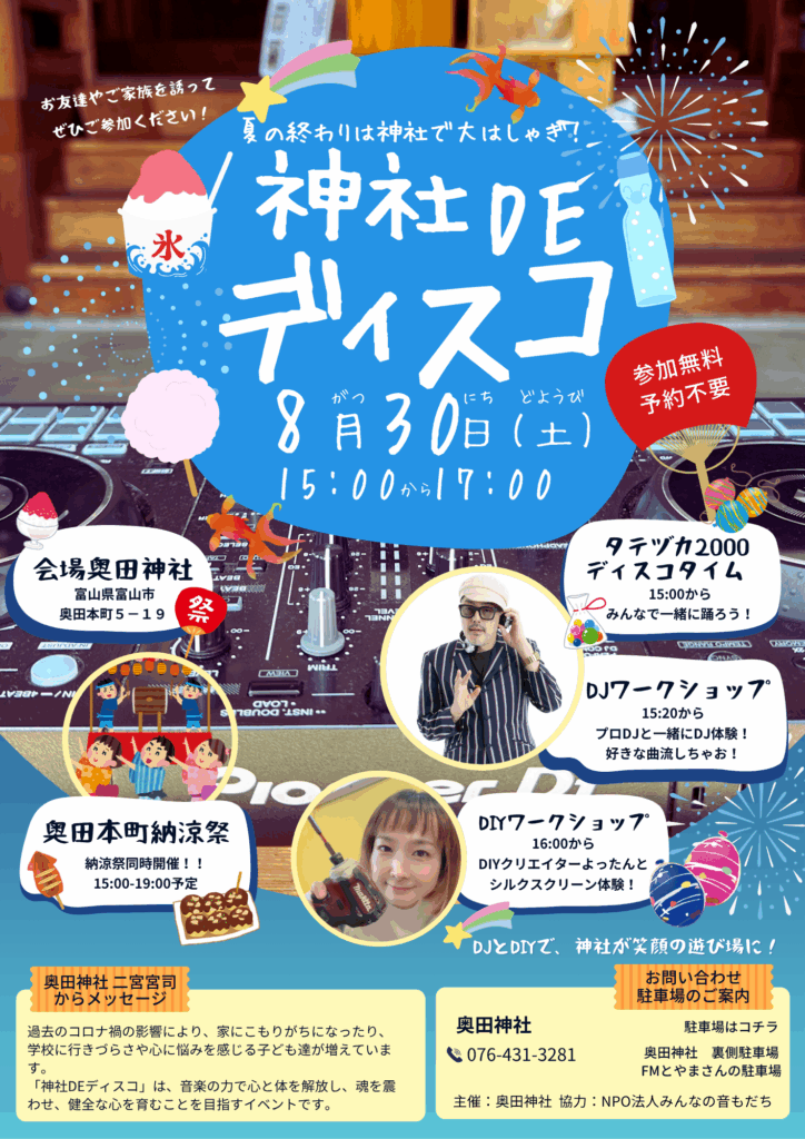 2025年8月30日(土)|富山市・奥田神社|「神社DEディスコ」開催決定!