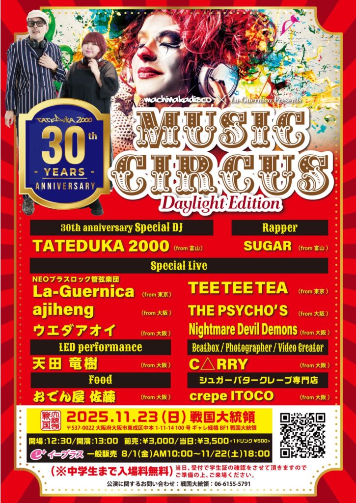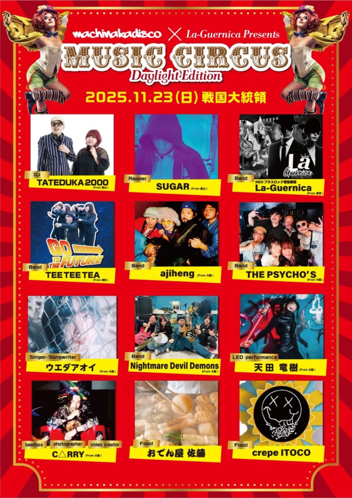 2025年11月23日(日) 大阪・戦国大統領|「La-Guernica × マチナカディスコPresents~Music Circus~」開催決定!