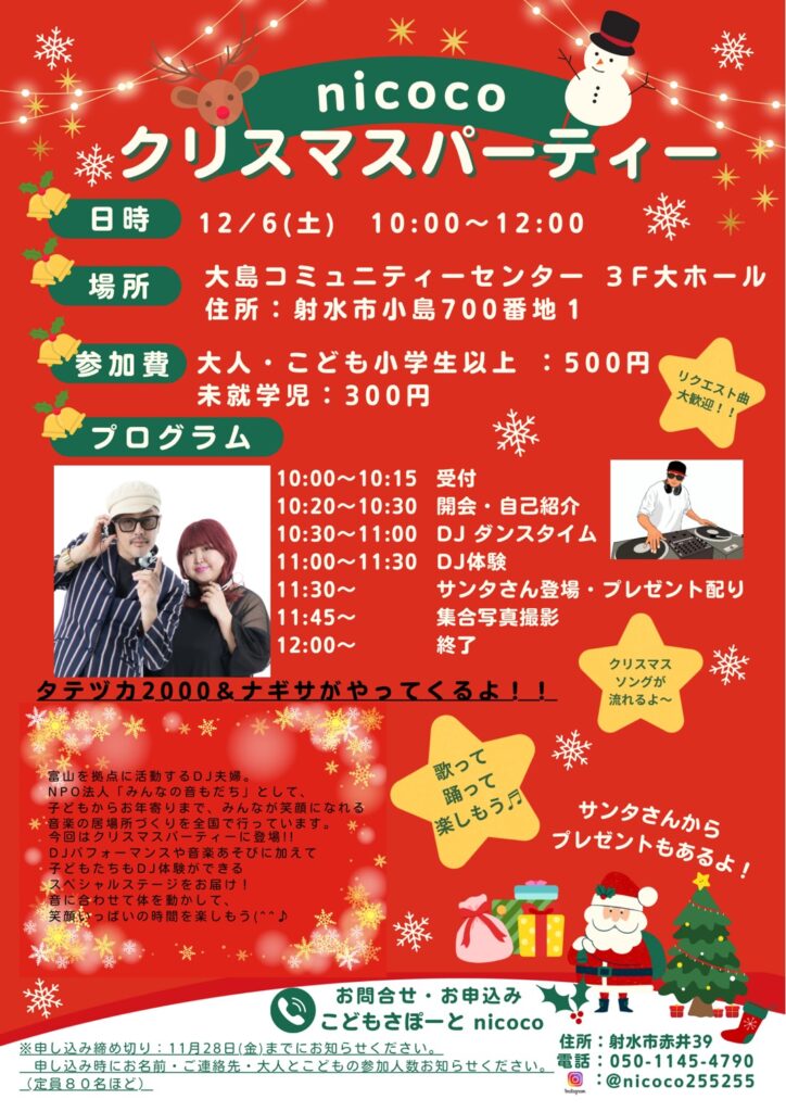 2025年12月6日(土) 射水市|「nicoco クリスマスパーティー」出演決定!