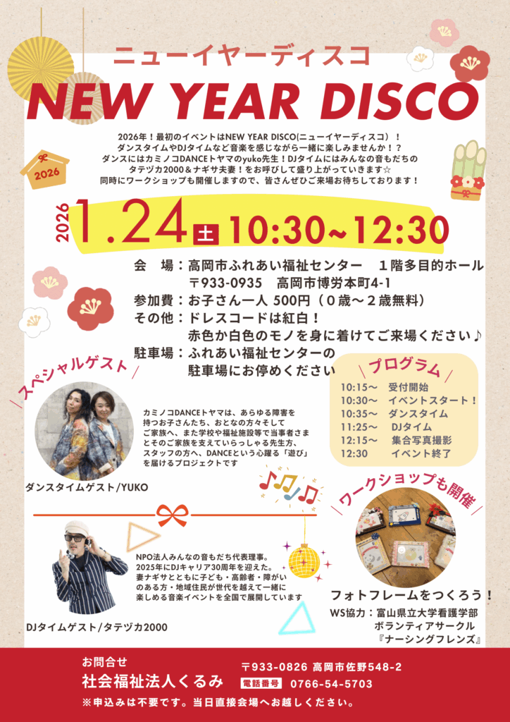 2026年1月24日(土) 高岡市ふれあい福祉センター|「NEW YEAR DISCO」に出演決定!