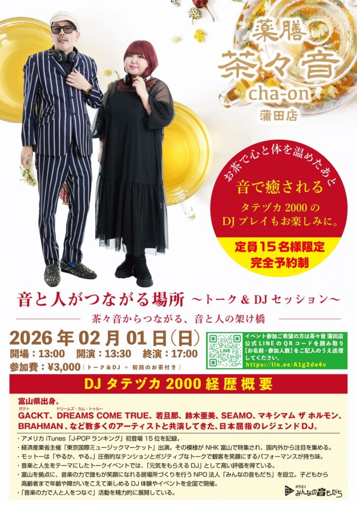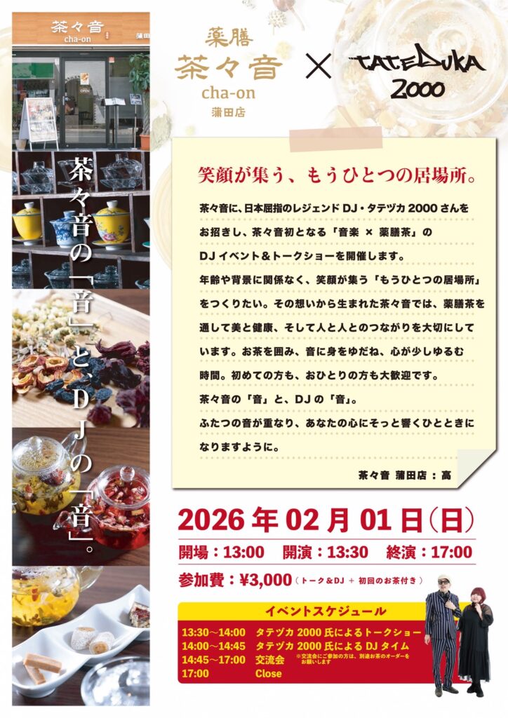 2026年2月1日(日) 東京・蒲田|薬膳茶専門店「茶々音」にてトーク&DJセッションに出演決定!