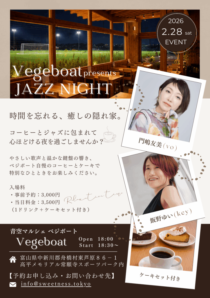2026年2月28日(土) 舟橋村|「Vegeboat presents JAZZ NIGHT」企画・制作を担当します!New!!