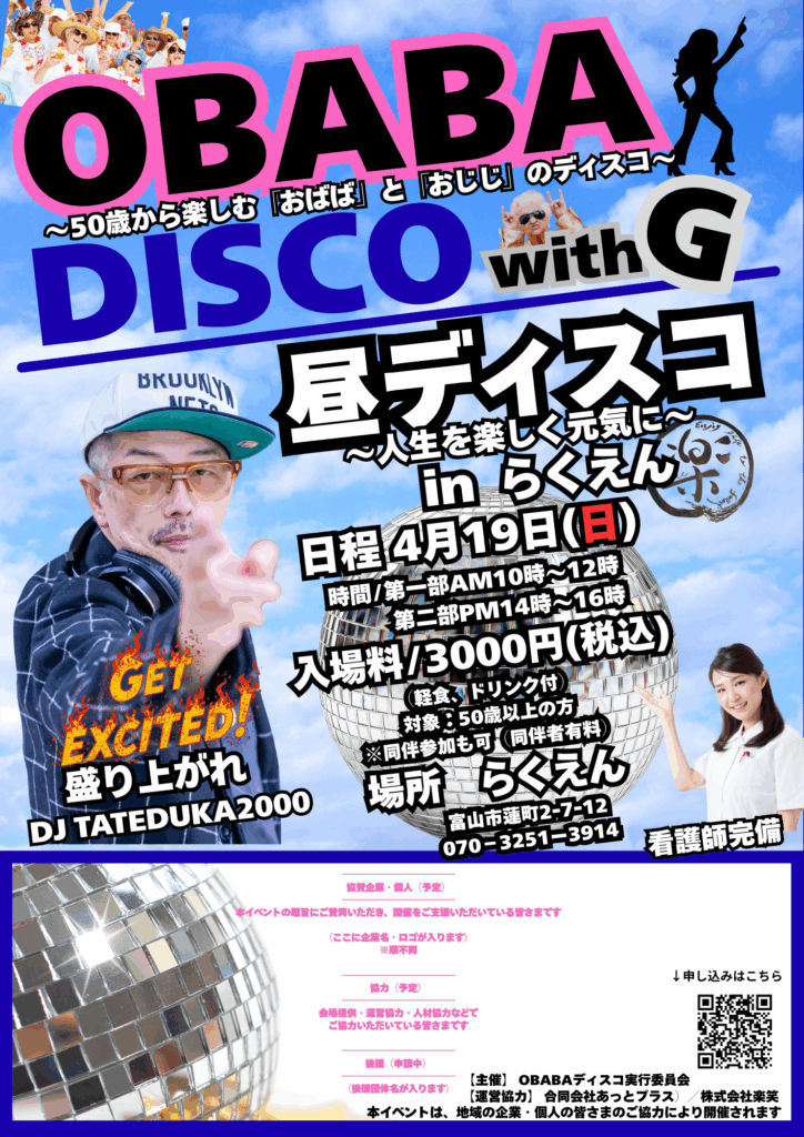 2026年4月19日(日) 富山市|シルバー世代が主役の「OBABAディスコ with G」出演決定!